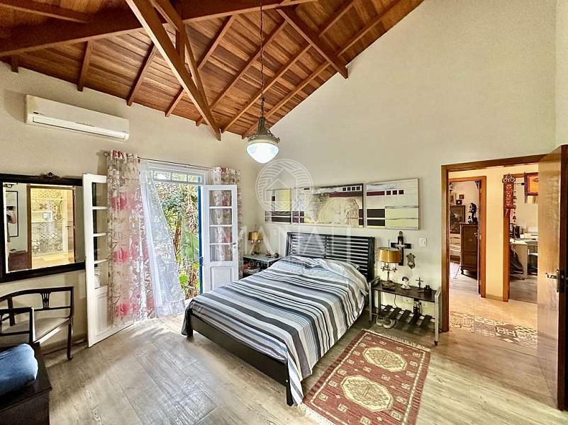 • Portas e janelões amplos em madeira e vidro.