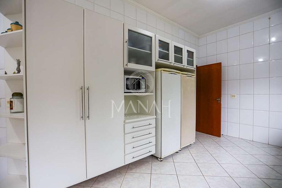 • Cozinha grande, com muitos armários planejados, sala de almoço e despensa.