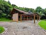 • Estilo rústico elegante, com portas e janelas em madeira e vidro.