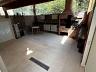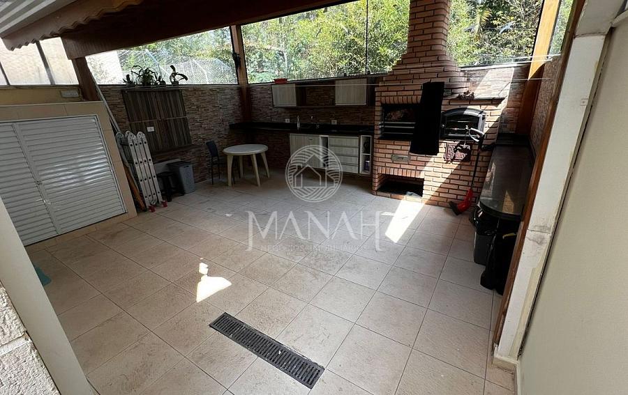 Quintal: pia completa e ampla, com churrasqueira e forno à lenha. Cobertura no quintal com janelas de vidro e telhado com abertura parcial.